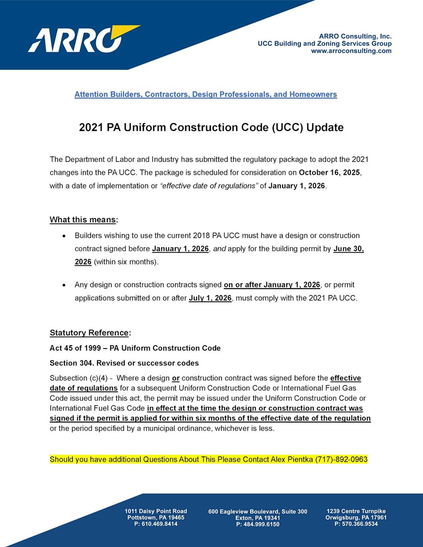 Also please be advised that the Township will be operating under the 2021 International Building Code starting January 1, 2026.