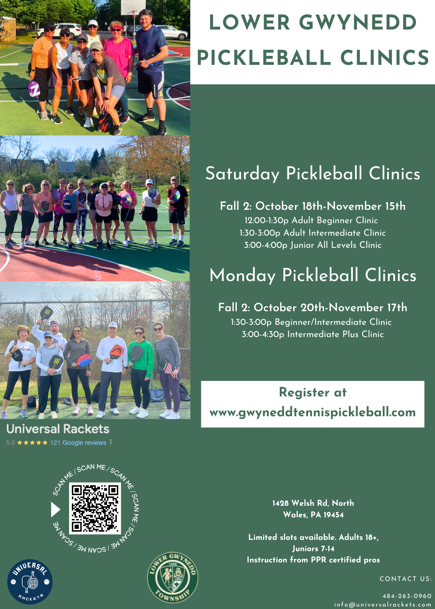 Pre-Registration is required for all program unless otherwise indicated. Registration are accepted with full payment and completed forms in –person or via mail. No phone registration are accepted. Registration forms can be downloaded from the Township website: lowergwynedd.org forms can also be faxed or emailed. We accept cash, checks (payable to Lower Gwynedd Township), and credit cards. There is a service fee for all credit card transactions. There will be a $25 service charge on all returned checks.