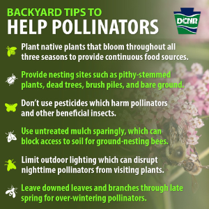 Why are pollinators important? Without them many fruits and vegetables would not be able to grow, so our whole food chain would eventually collapse. Planting pollinator friendly plants, especially native ones, ensures that these bees, butterflies, bugs, wasps, and other insects have the nectar and pollen they eat to survive, so that we in turn will survive. Here are some tips for planting your own pollinator garden: