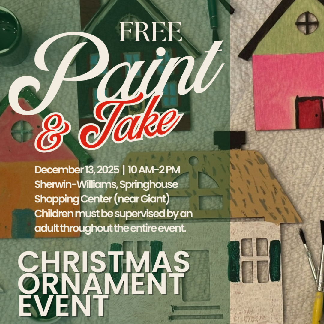 at Sherwin-Williams, Springhouse Shopping Center (near Giant). 1121 N Bethlehem Pike Ste 10, Spring House, PA 19477