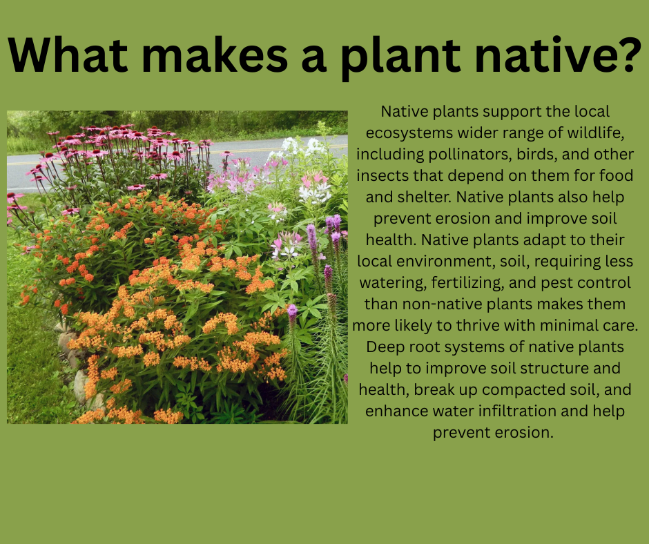 In the next few months, while things are growing and residents are planting in their yards please remember to focus on native plants that you can incorporate into your home gardens, particularly those that can replace non-native invasive species that have been very common landscape plants that many residents likely have in their garden beds around their homes. These non-natives provide very little, if any, benefit to the native fauna of our area, and frequently escape into the wild areas, become invasive and out-competing natives for resources they need to survive and create the biodiversity we need.