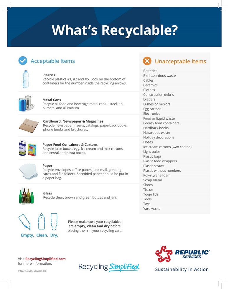 For more information on recycling from Republic Services check out their educational material at Recycling Education, Activities and Ideas | Republic Services