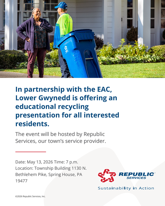 📍 Lower Gwynedd Township Building | 1130 N. Bethlehem Pike, Spring House, PA 19477In partnership with the Republic Services, our town's service provider, Lower Gwynedd's EAC is offering an educational recycling presentation for all interested residents.